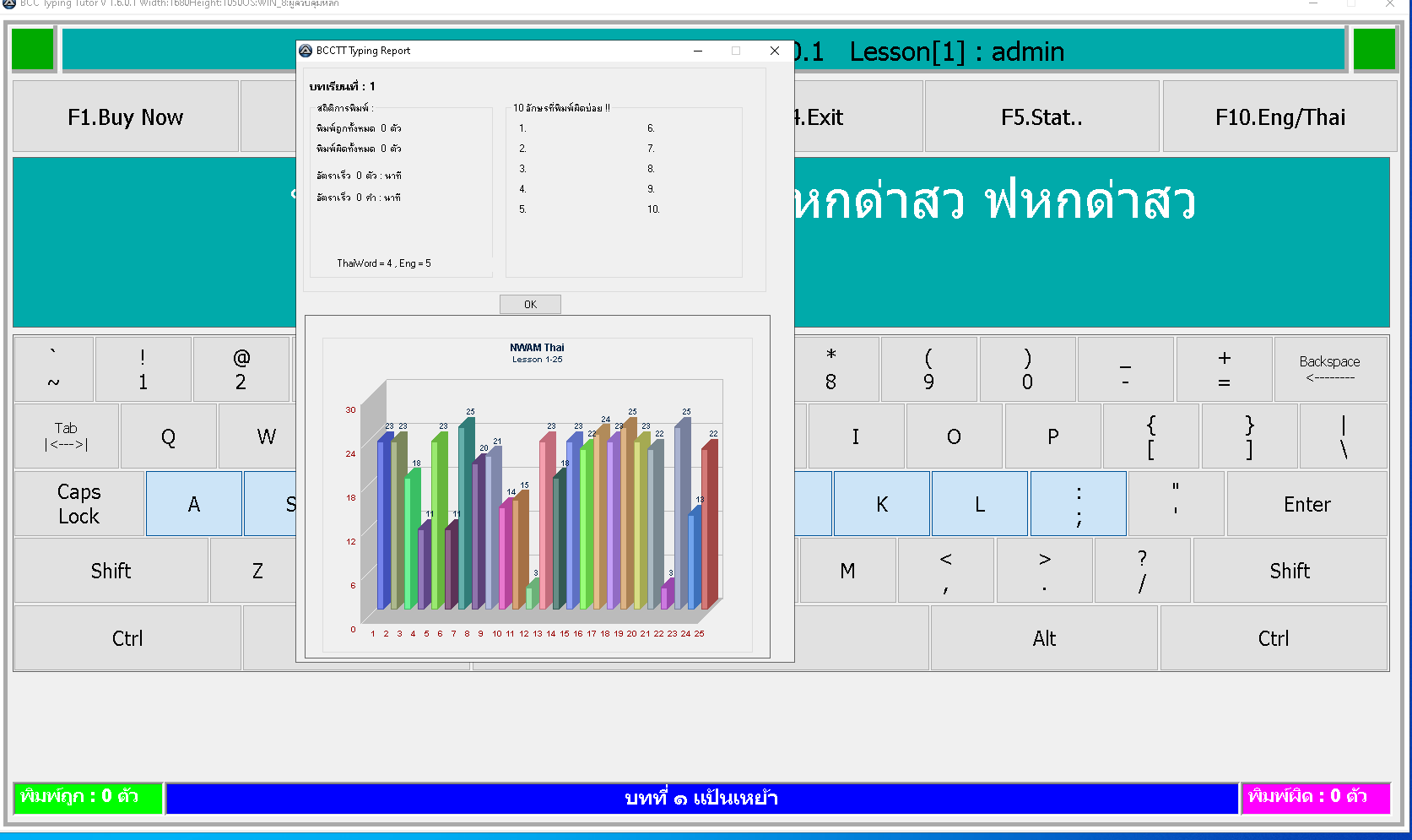 - มีสรุปความเร็วในแต่ละบทแบบกราฟแท่งในรูปแบบ 3 มิติ โดยอัตโนมัติ หลังการทดสอบ