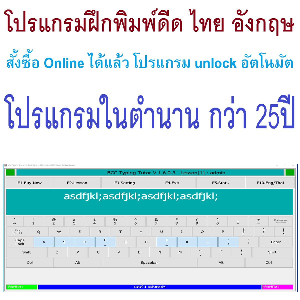 Note : สำหรับในส่วนของ โปรแกรมฝึกพิมพ์ดีด BCC Typing Tutor Fxicdi,นี้ มีคุณสมบัติเป็นแชร์แวร์ (Shareware) ซึ่งทางผู้พัฒนา โปรแกรม (Program Developer) เขาได้คุณได้สามารถนำไปใช้กันก่อนเป็นจำนวน 2 บทเรียนจาก 25 บท หากต้องการจะใช้ต่อกันในแบบตัวเต็มๆ ต้องเสียค่าลงทะเบียน เป็นเงินจำนวน 510.00 บาท
